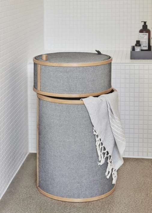Hübsch Vasketøjskurv Ø38m – Bambus/Grå Stof