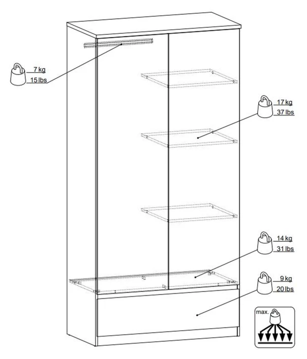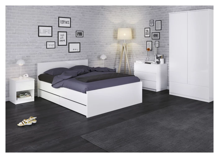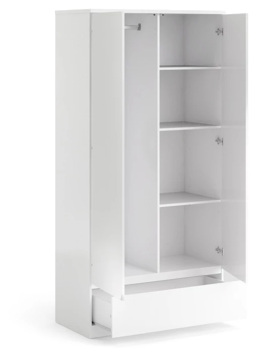 Naia Garderobeskap – Hvit Høyglans M/2 Dører + 1 Skuffe