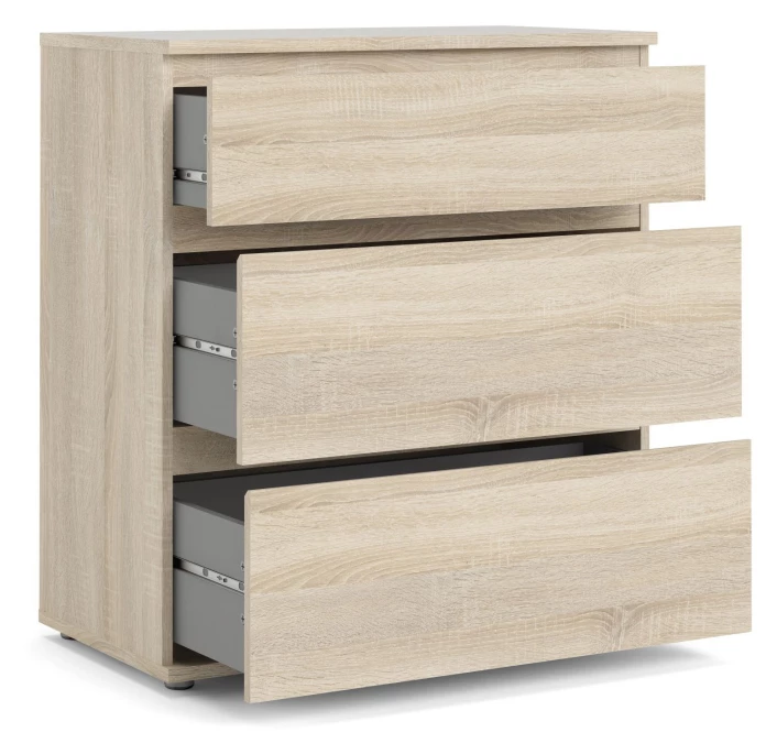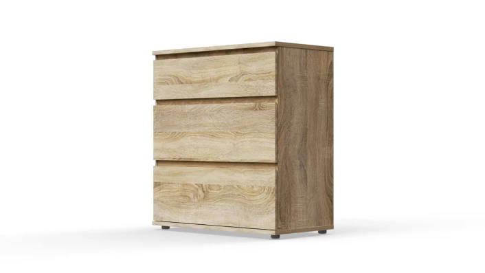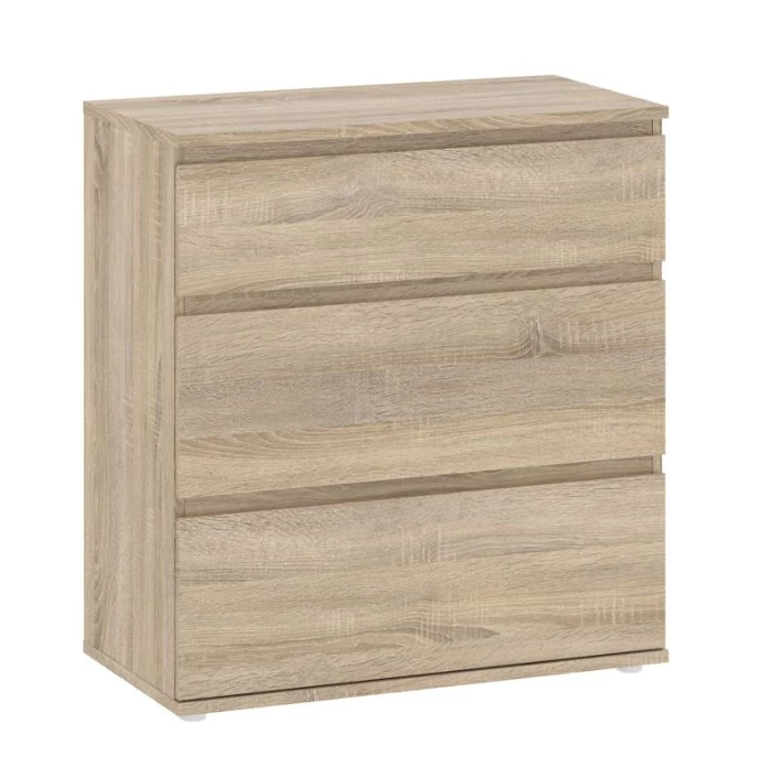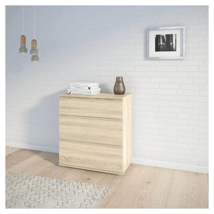 Fin kommode i lyst tre. Kommoden har tre brede skuffer uten grep. Møblet passer med sitt enkle design inn i ethvert hjem.