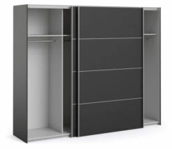 Hvit kommode i melamin. Kommoden har seks skuffer – to smale og fire brede – med antikk-lignende metallgrep som fremhever det romantiske uttrykket.