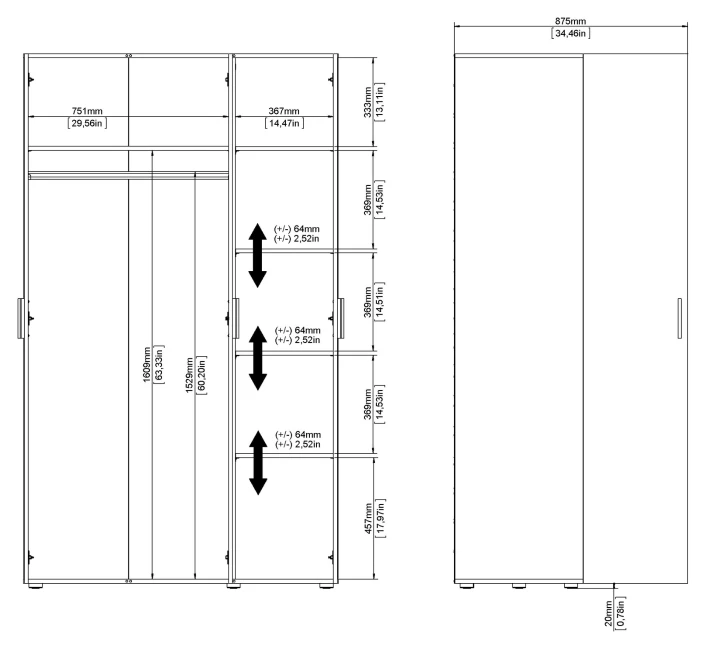 Pepe Garderobeskap M. 3 Dører – Trøffel