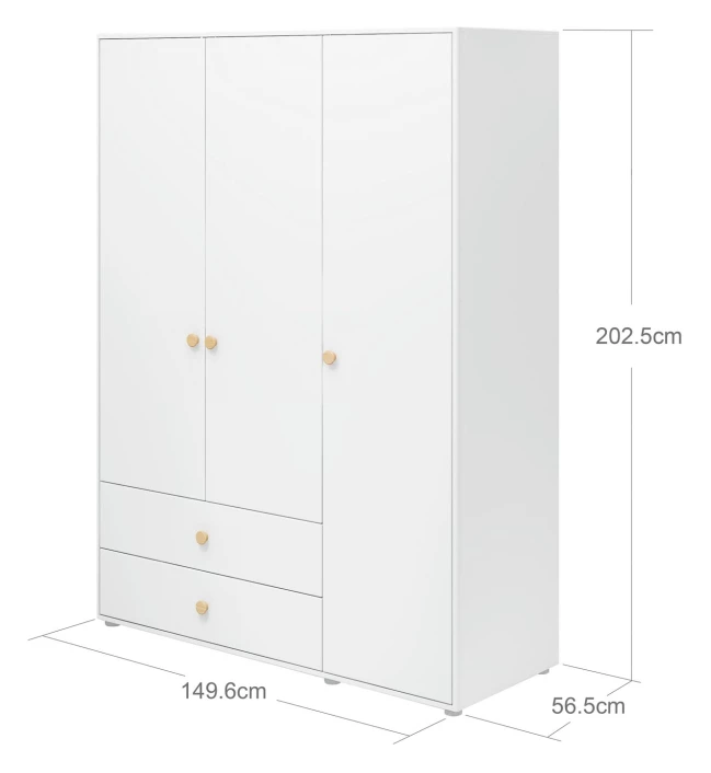 Roomie Garderobeskap M. 3 Dører – Hvit/Eik