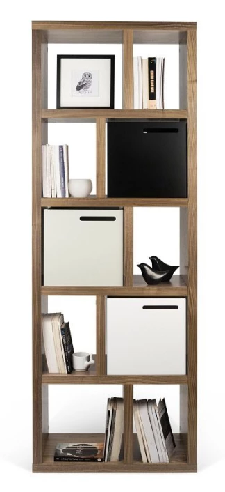 Stilig og praktisk reol i mørkt tre som er perfekt i stuen eller på hjemmekontoret. Reolen har ti rom og det er derfor god plass til bøker, fine pyntegjenstander eller det du måtte ønske. Kombiner gjerne med Berlin Box, og få litt ekstra farge og liv i rommet. Reolen er 1.98 cm høy
