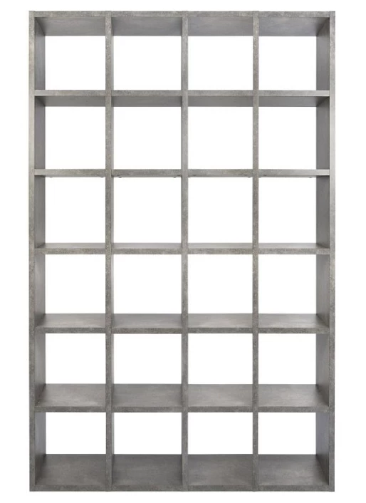 Stilig og praktisk reol med et rått betong-look. Reolen har 24 rom som gir masse oppbevaringsplass til stuen eller hjemmekontoret. Betong-looket gir reolen et moderne uttrykk som er helt riktig for tiden.