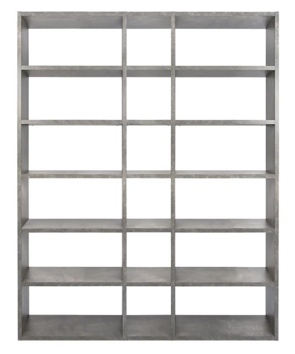 Stilig og praktisk reol med et rått betong-look. Reolen har 18 rom som gir masse oppbevaringsplass til stuen eller hjemmekontoret. Betong-looket gir reolen et moderne uttrykk som er helt riktig for tiden.
