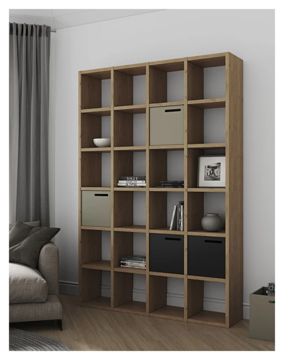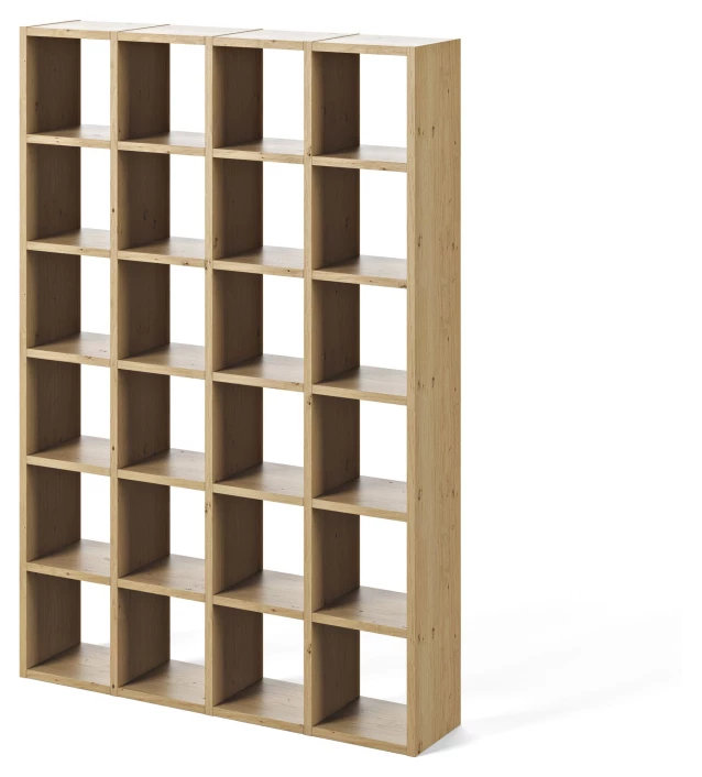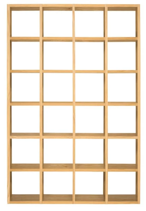 Stor bokreol i eik med 24 oppbevaringsrom. Med denne reolen er det enkelt å få plass til hele boksamlingen. Reolen kan også brukes som en praktisk romdeler.