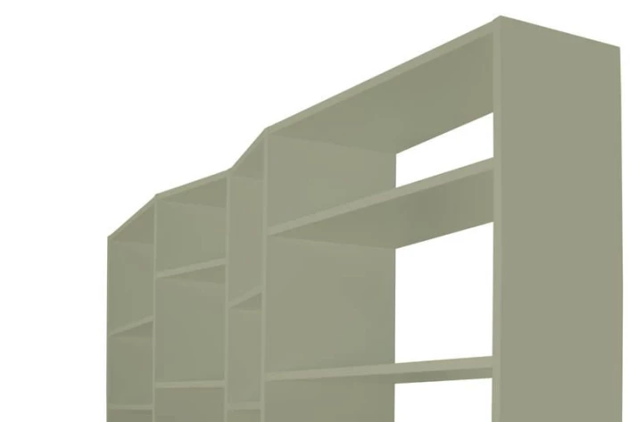 Vakker stor bokreol i grå med 28 oppbevaringsrom i ulike størrelser. Med denne reolen er det enkelt å få plass til hele boksamlingen. Den bølgede» profilen gir møbelet et spennende uttrykk som med sikkerhet gir noe ekstra til innredningen.»