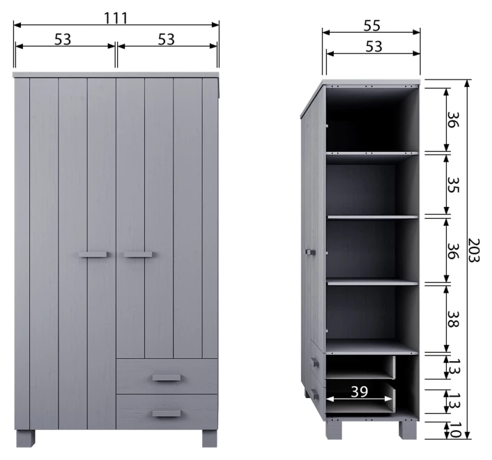WOOOD Dennis Garderobeskap 202x111x55 – Concrete Grå